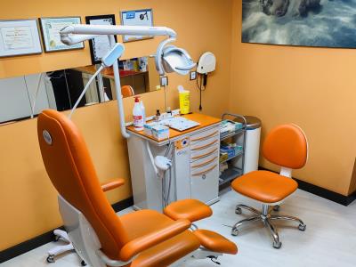 Room with a comfortable special chiropody chair.